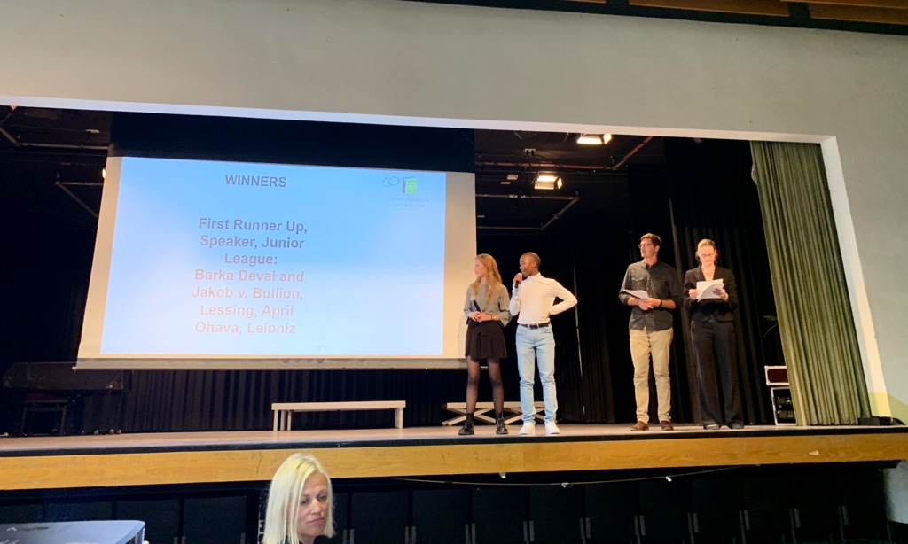 Stolz sind wir aber auch auf den dritten Platz unseres Senior-Teams, auf Noah, der in der Katergorie best speaker als Sieger geehrt wurde sowie Melisa und Yussef, die hier den zweiten Platz erreichten! Very well done, indeed!