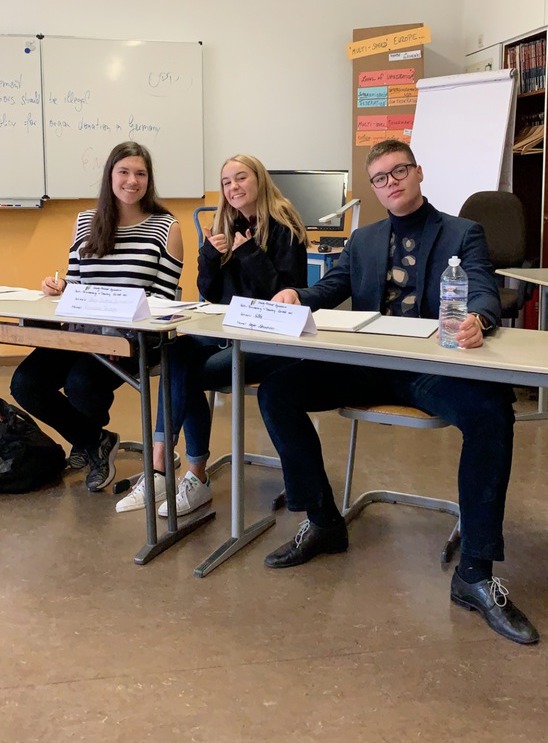 in der Debate-AG (Juniors, Mittelstufe) und den Debate-Kursen (Seniors, Oberstufe) vor allem an Argumentationsstruktur, Ausdruck und rhetorischer Überzeugungskraft.
