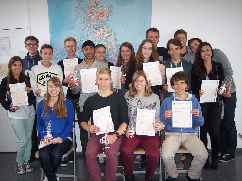 Wie in den Jahren zuvor haben wieder über 20 Schülerinnen und Schüler unserer Oberstufe im Schuljahr 2017/18 weder Zeit noch Mühen gescheut und sich mit großem Enthusiasmus in die Vorbereitungen auf die anspruchsvollen Englisch-Prüfungen der Cambridge University gestürzt, immer wieder Essays verfasst, Hörtexten gelauscht, Interviews simuliert, grammatische Strukturen und Vokabeln, Phrasen, Kollokationen gepaukt und angewendet. Nun hat sich ihr Einsatz ausgezahlt und sie können stolz ihr Certificate of Advanced English (CAE) bzw. Certificate of Proficiency in English (CPE) in ihren Händen halten. Splendid!