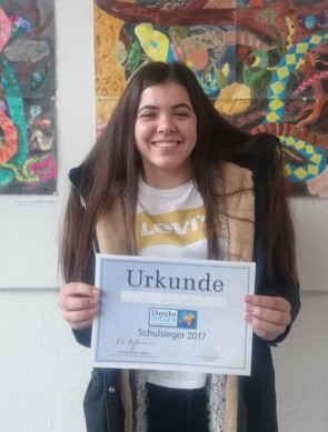 Nachdem Lena den Klassensieg erreichte, konnte sie sich danach als Siegerin gegen ihre MitschülerInnen der Klassen 7-10 durchsetzen und ist somit für den Landesausscheid Berlin am 14. März qualifiziert. Damit nähert sich die Chance, Deutschlands beste Geographie-Schülerin zu werden. Durch den Landessieg würde sich Lena einen Platz im großen Finale von Diercke Wissen am 09. Juni 2017 in Braunschweig sichern.