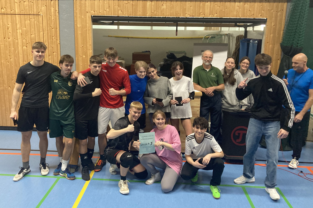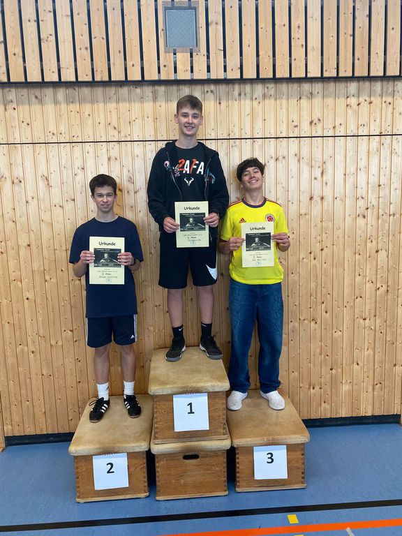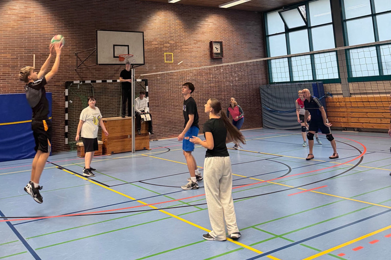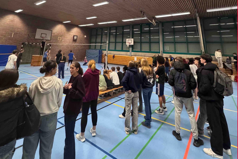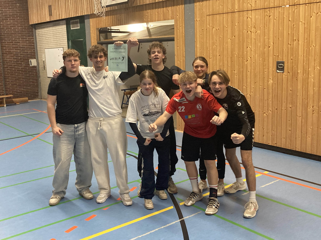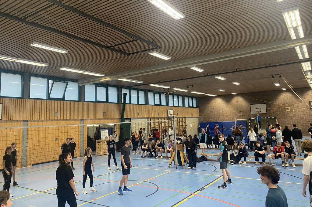 Am 16.12.2024 fand unser traditionelles Volleyballturnier für die 10. Klassen, die Oberstufe und die Lehrer*innen statt. 10 Mannschaften traten an. Die Stimmung war dank der Zuschauer und der hohen Spielqualität toll. Die Organisation rund um Herrn Knoch sorgte für einen reibungslosen Ablauf, sodass Punkt 17 Uhr die Gewinner gekürt werden konnten: 1. Platz Lehrerteam 1, 2. Platz Q1 Kurs von Herrn Ruby, 3. Platz Q3 Auswahl um unsere Handballer.