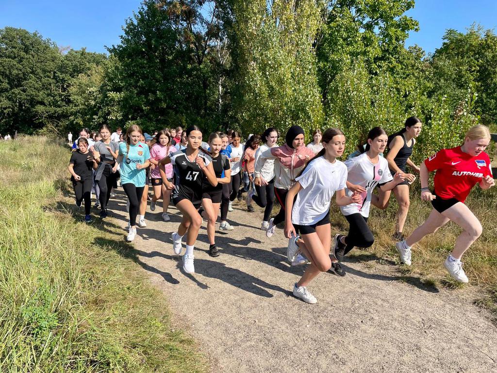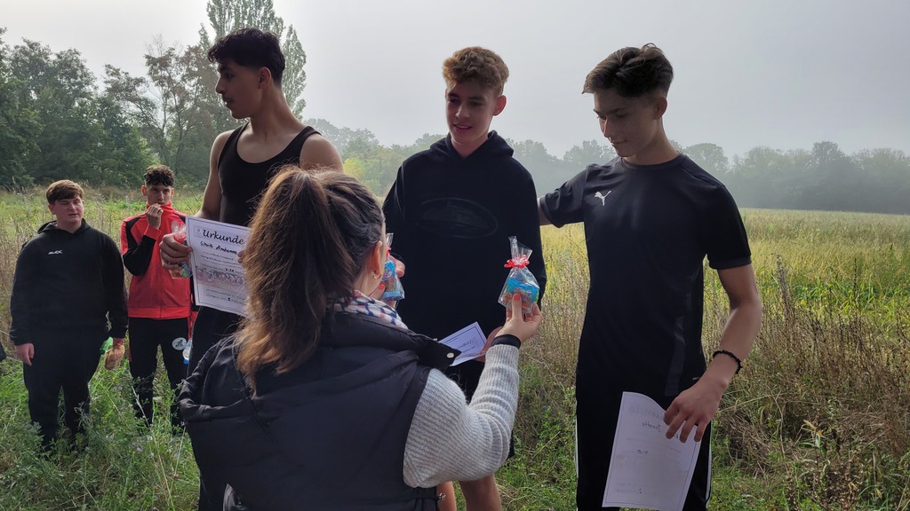 Bei strahlendem Sonnenschein fand am 26. September 2023 nach vier Jahren Pause für die 7.-10. Klassen unser schulinterner Crosslauf statt. Auf einem 2km-Rundkurs liefen die Schüler*innen dabei durch Wald und Wiese und über Stock und Stein. Am Ende gab es in jedem Jahrgang jeweils drei Mädchen und drei Jungen, die mit fabelhaften Zeiten auf dem Siegerpodest landeten. Auch alle anderen Teilnehmer*innen wurden selbstverständlich von ihren Mitschüler*innen angefeuert und im Zielbereich für ihr Durchhalten bejubelt. Getreu dem Motto „Dabei sein ist alles“ waren am Ende alle froh, die Ziellinie erreicht zu haben und die sportliche Herausforderung angenommen zu haben. Ein besonderer Dank gilt den Schulsanitäter*innen sowie den Oberstufenschüler*innen, die beim Auswerten der Zeiten halfen und die Läufer*innen mit ihren Fahrrädern auf dem Rundkurs begleiteten. Im kommenden Schuljahr soll es eine Neuauflage des Crosslaufs geben. Bis dahin darf fleißig trainiert werden. :)