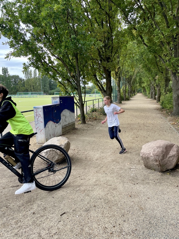 Der Herbst ist da und somit auch der jährlich wiederkehrende Bezirkscrosslauf der Tempelhof- Schöneberger Schulen, bei dem einige laufbegeisterte Schüler*innen unserer Schule am 06.10.23 ausgesprochen erfolgreich teilnahmen. Fast die Hälfte unser gemeldeten Läufer*innen qualifizierten sich über fanstatische Platzierungen unter den Top 15 der jeweiligen Jahrgänge für das Berlinfinale im Frühjahr. Besonders hervorzuheben sind dabei die Platzierungen auf dem Treppchen: Finn R. (7a) 3. Platz, Theresa B. (10b) 2. Platz und Luisa v.D. (9c), die mit einem grandiosen Abstand zu den restlichen Läuferinnen ihres Jahrgangs den 1. Platz machte. Der Sportfachbereich bedankt sich bei allen Teilnehmenden für die Laufbegeisterung und die Anstrengungsbereitschaft. Ihr könnt sehr stolz auf euch sein!