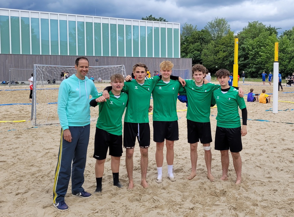 Es war die Krönung einer tollen Handball-Saison. Das GBG-Team, vertreten von Johannes, Jonathan, Marc, Paul und Sören aus dem 2. Semester, sicherte sich erneut die Goldmedaille, dieses Mal im Beach-Handball. Mit zum Teil spektakulären Kempa-Tricks, Pirouetten-Würfen und Torwarttoren spielte sich das Team im „Revier der Reinickendorfer Füchse“ in die Herzen der Zuschauer. Herzlichen Glückwunsch zu dieser großartigen Leistung!