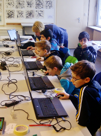 Die Arbeit in den kleineren Gruppen ist intensiver und erlaubt die Heranführung der Schülerinnen und Schüler an den Umgang mit Bildbearbeitungsprogrammen, Powerpoint, Audio-und Notationsprogrammen. Filmschnitt mit Musik oder das Komponieren am Computer sind auch mögliche Lerninhalte.