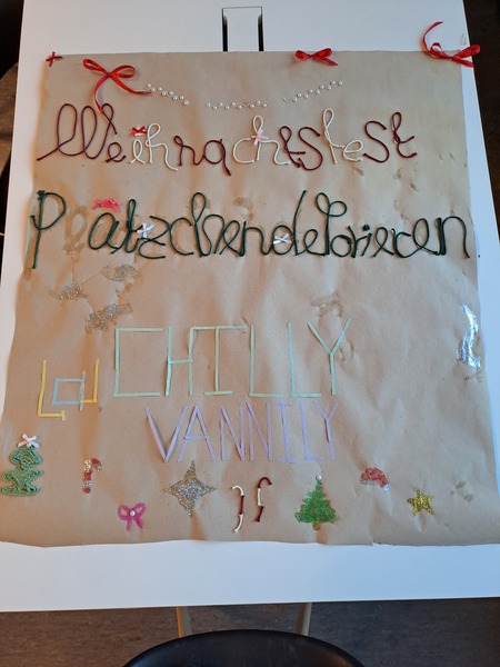 Am letzten Schultag vor den Ferien haben wir als Team Ganztag / Schulsozialarbeit im Rahmen unserer GBG-Schulweihnachtsfeier für die Schüler*innen eine weihnachtliche Eröffnungsfeier veranstaltet. Bei Weihnachtsleckereien und heißem Tee konnten wir gemeinsam die neue Küche einweihen. Zusammen mit Eylül, der Leitung unserer Mädchen AG, haben wir Herz-Lebkuchen mit Icing (gefärbtem Puderzucker) dekoriert. Die entstandenen Kunstwerke konnten dann weiterverschenkt werden. Dezember, 2023